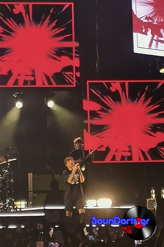 Λίγο πριν τις 21:00 ακούστηκε η φωνή του Tomlinson από τα ηχεία να παρακαλεί τον κόσμο να κάνει ένα βήμα πίσω και να διατηρήσει τις απαραίτητες αποστάσεις τηρώντας ακόμα τα υγειονομικά πρωτόκολλα. Λίγο αργότερα η φιγούρα του, εμφανίστηκε στα video walls της σκηνής να γράφει με μαρκαδόρο στο φακό της κάμερας που τον τραβούσε τον τίτλο του τελeυταίου του album, από το οποίο πήρε τον τίτλο της και η περιοδεία του… “Faith In The Future”. Όπως ήταν αναμενόμενο επικράτησε πανικός με το κοινό να τα δίνει όλα με το που πάτησε το πόδι του σκηνή και έπιασε το μικρόφωνο. Χωρίς να υπερβάλουμε ούτε λιγάκι (υπάρχουν αποδείξεις στα videos), το ελληνικό κοινό ήταν πολύ καλά “διαβασμένο” κι έτσι σε όλα τα τραγούδια του -από την αρχή μέχρι και το encore της συναυλίας- ο Tomlisnon ερμήνευσε τα τραγούδια του με τη “βροντερή” συνοδεία του κοινού.