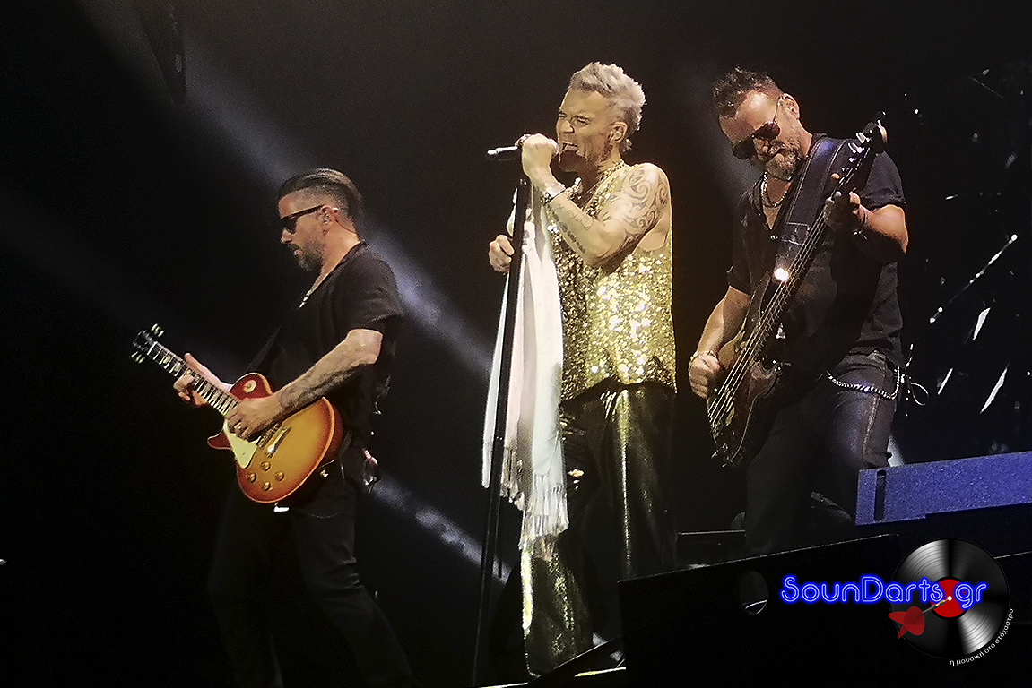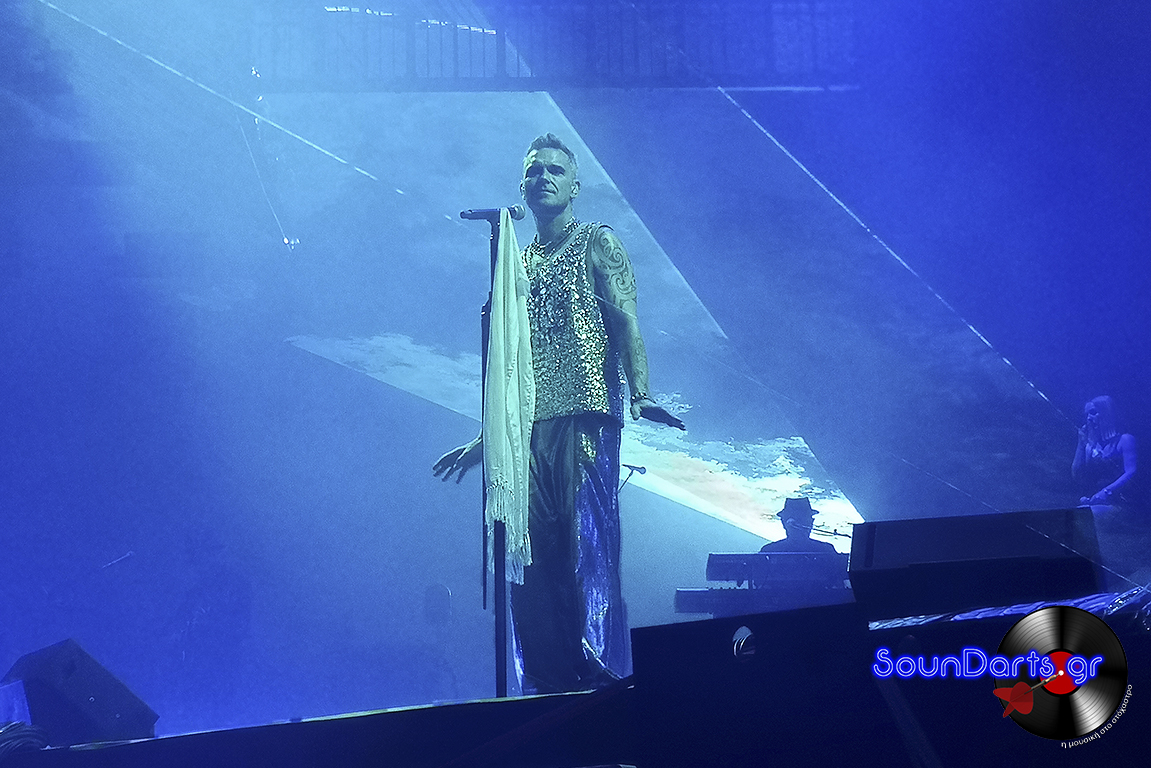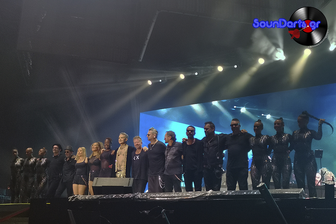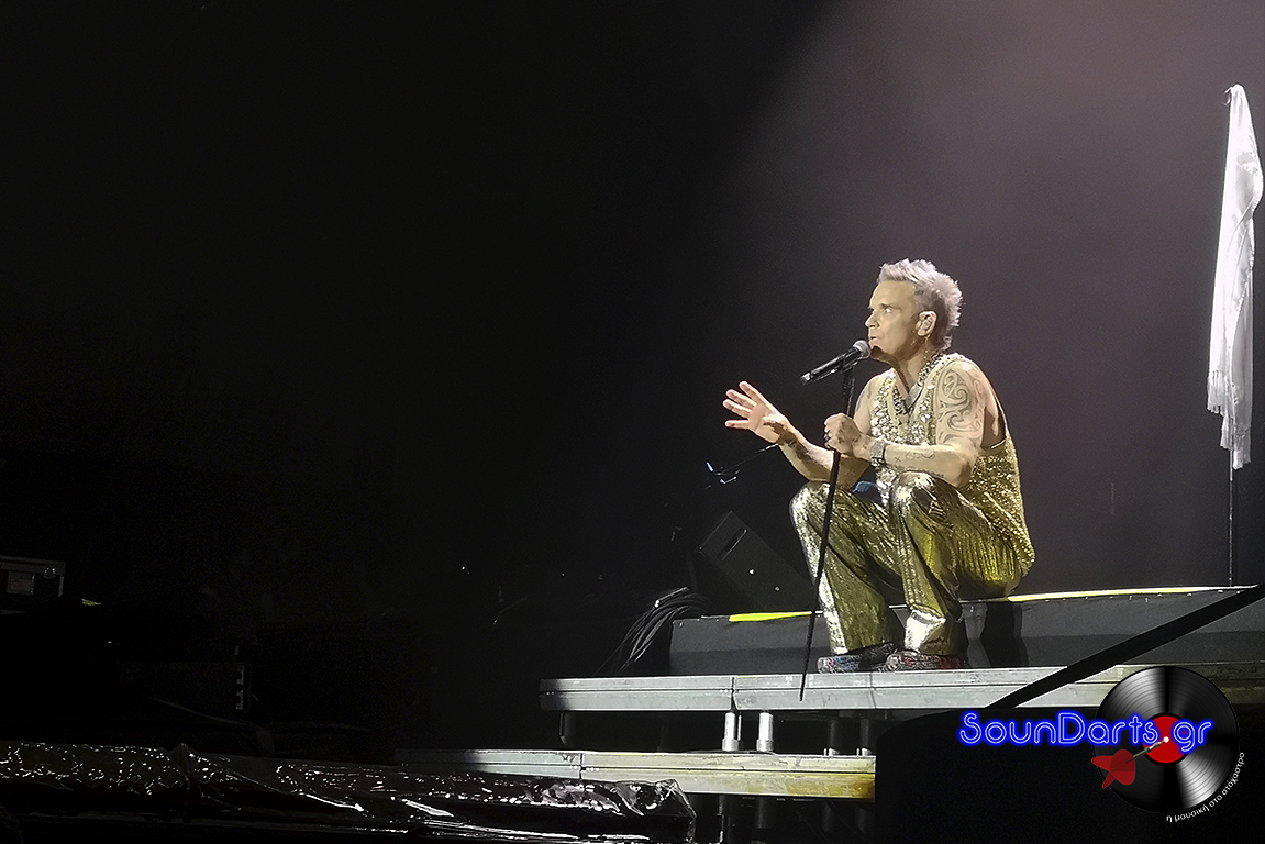 Ο ντυμένος στα χρυσά Robbie επέλεξε να μιλήσει αρκετά με το κοινό, να γνωριστεί μαζί του (βλ. τον Δημήτρη και την Ρία, που στον μεν έκανε πλάκα και στη δε αφιέρωσε το “She’s The One”), ενώ το ενδιαφέρον του φαίνεται πως μονοπώλησε η σύνδεσή του με τους Take That. Μάλιστα, στο set του συμπεριέλαβε και τραγούδια του συγκροτήματος στο οποίο συμμετείχε στα ‘90s, όπως το “The Flood”, ενώ δε δίστασε να διασκευάσει το “Could It Be Magic” του Barry Manilow, αλλά και το “Don’t Look Back In Anger” των Oasis.