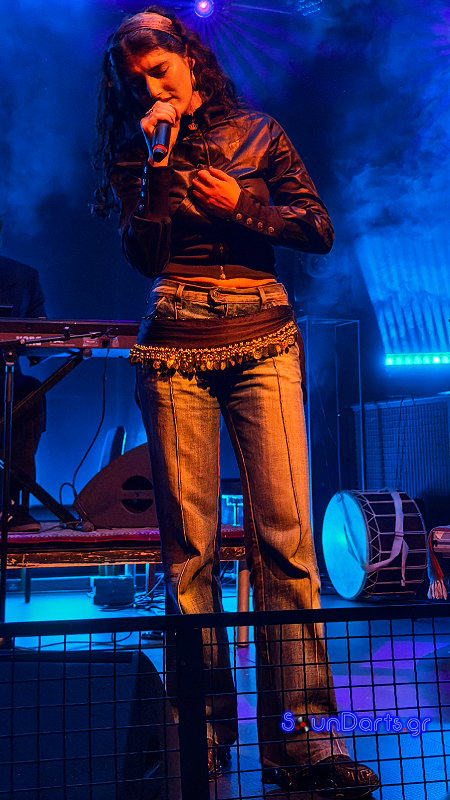 Το “Gaybana Sevdaluk” ήταν ίσως από τις πιο δυνατές στιγμές της βραδιάς. Ο ρυθμός, η ένταση, ο τρόπος που κινούνταν στη σκηνή — όλα έδεναν σ’ ένα σκηνικό όπου η Ανατολή και τα Βαλκάνια στροβιλίζονταν γύρω της. Το “Σύρε να πεις στη μάνα σου” ακολούθησε σαν ανάσα τρυφερότητας, κι ύστερα το “Kano Traka” σήμανε το ξέσπασμα, το ξημέρωμα μιας γιορτής που δεν ήθελες να τελειώσει.