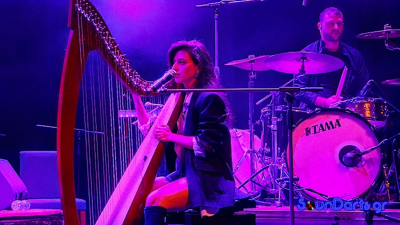 Το Gazarte Ground Stage είχε εκείνο το γνώριμο φως, χαμηλό αλλά ζεστό, την προσμονή να αιωρείται σαν λεπτό σύννεφο πάνω από τα κεφάλια όλων. Ο κόσμος έπαιρνε θέση, κουβέντες ψιθυριστές, βλέμματα στραμμένα προς τη σκηνή που σε λίγο θα έφερνε τη μουσική μπροστά μας. Η βραδιά ξεκίνησε με την Έλενα Λεώνη, που εμφανίστηκε σχεδόν αθόρυβα, κρατώντας την άρπα της – ένα όργανο που μοιάζει πάντα να φέρει κάτι ιερό. Μόλις ακούστηκαν οι πρώτες νότες του “Τούτο το καλοκαιράκι” -μιας διασκευής της ίδιας της ερμηνεύτριας από ένα παραδοσιακό τσάμικο-, το κοινό μαλάκωσε. Υπήρχε κάτι αιθέριο στον τρόπο που η φωνή της μπλέχτηκε με τον ήχο των χορδών· σαν να άνοιγε ένα παράθυρο προς μια άλλη εποχή, αλλά με τη φρεσκάδα του τώρα.