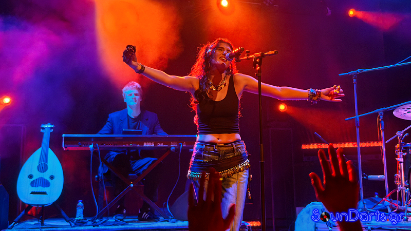 Το “Μικρό μου” και η “Πυγμαχία” έφεραν μια ένταση πιο προσωπική, με τη φωνή της Melina να γίνεται όχημα συναισθημάτων που ξεπερνούσαν τις λέξεις. Κάθε φράση είχε βάρος, κάθε βλέμμα της προς το κοινό ήταν μια γέφυρα επικοινωνίας. Στο “Kaldir” και το “Lamaney” άρχισε το ταξίδι: βαλκανικοί ρυθμοί, ανατολίτικες πινελιές, μελωδίες που σε τύλιγαν. Το “Mila Mou Normal (Katse Kala)” ήταν ένα ξέσπασμα, μια στιγμή που το κοινό σηκώθηκε σχεδόν από μόνο του, σαν να υπήρχε μια αόρατη συμφωνία να ζήσει αυτή τη στιγμή συλλογικά.
